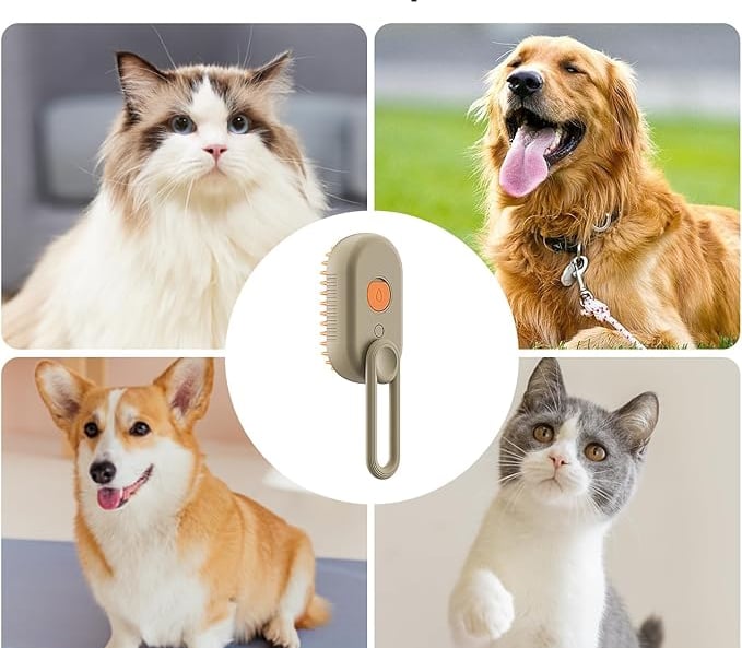 Escova multifuncional para animais de estimação, projetada para deixar seu amigo peludo mais confortável enquanto se cuida. O design resistente e durável garante que você não precise se preocupar em arranhar ou irritar a pele do seu animal de estimação. Esta ferramenta de cuidados é perfeita para cuidados de cabelo e massagem para todos os tipos de gatos e cães. Mantenha seu animal de estimação com ótima aparência e sensação com nossa escova vaporizadora para animais de estimação.